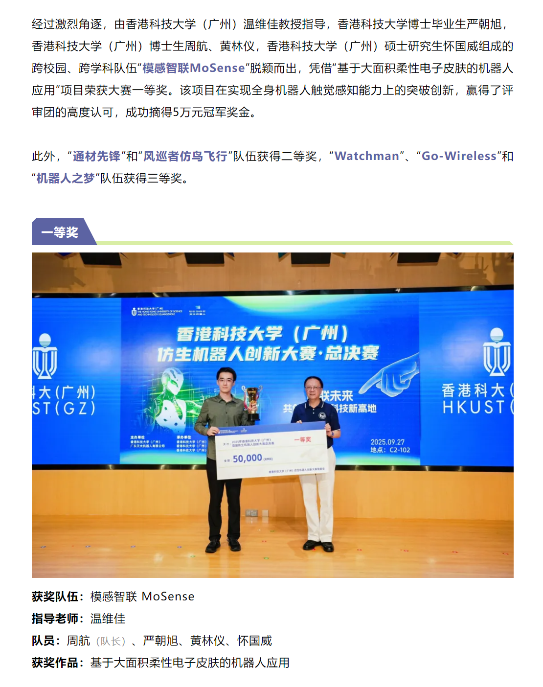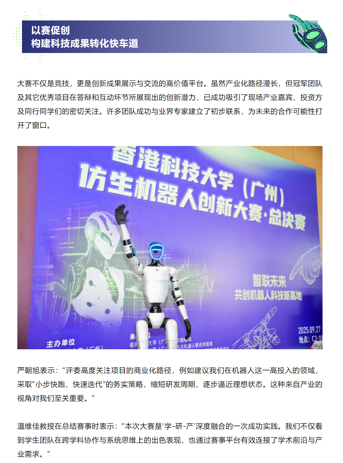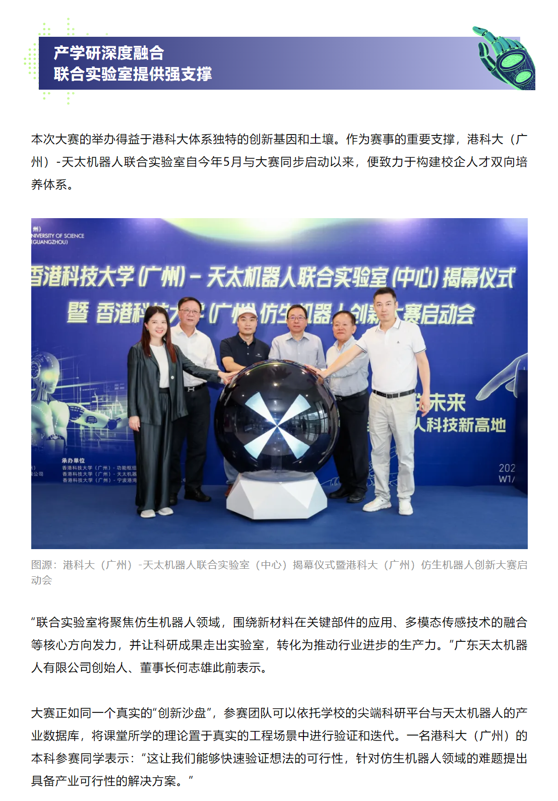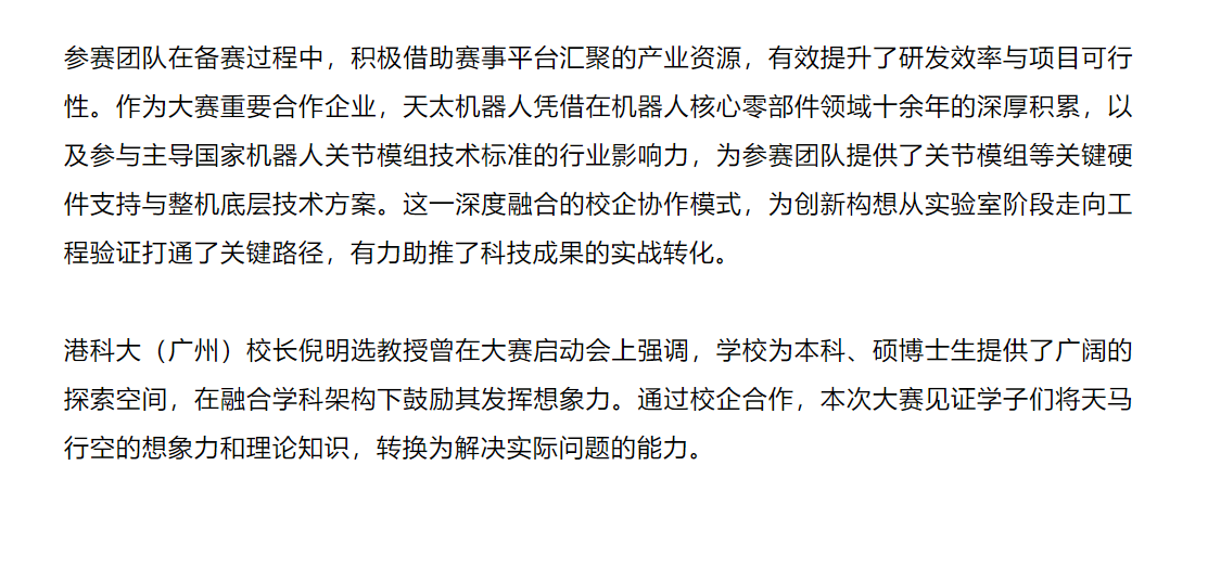 港科大(广州)携手天太机器人,打造大湾区首个仿生机器人“全栈技术竞技大赛”