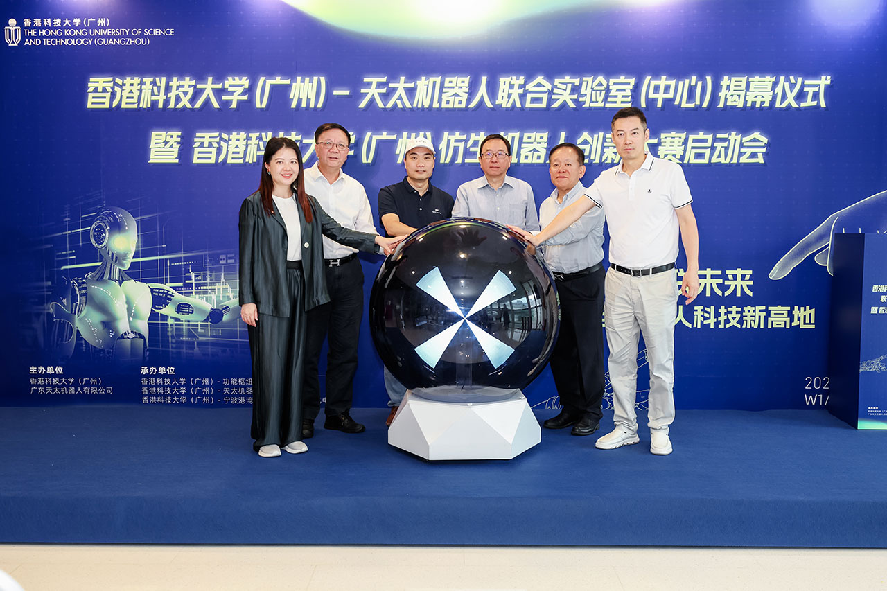 随后,主礼领导与特邀嘉宾共同为实验室揭牌,标志着港科大(广州)-天太机器人联合实验室(中心)正式投入使用。